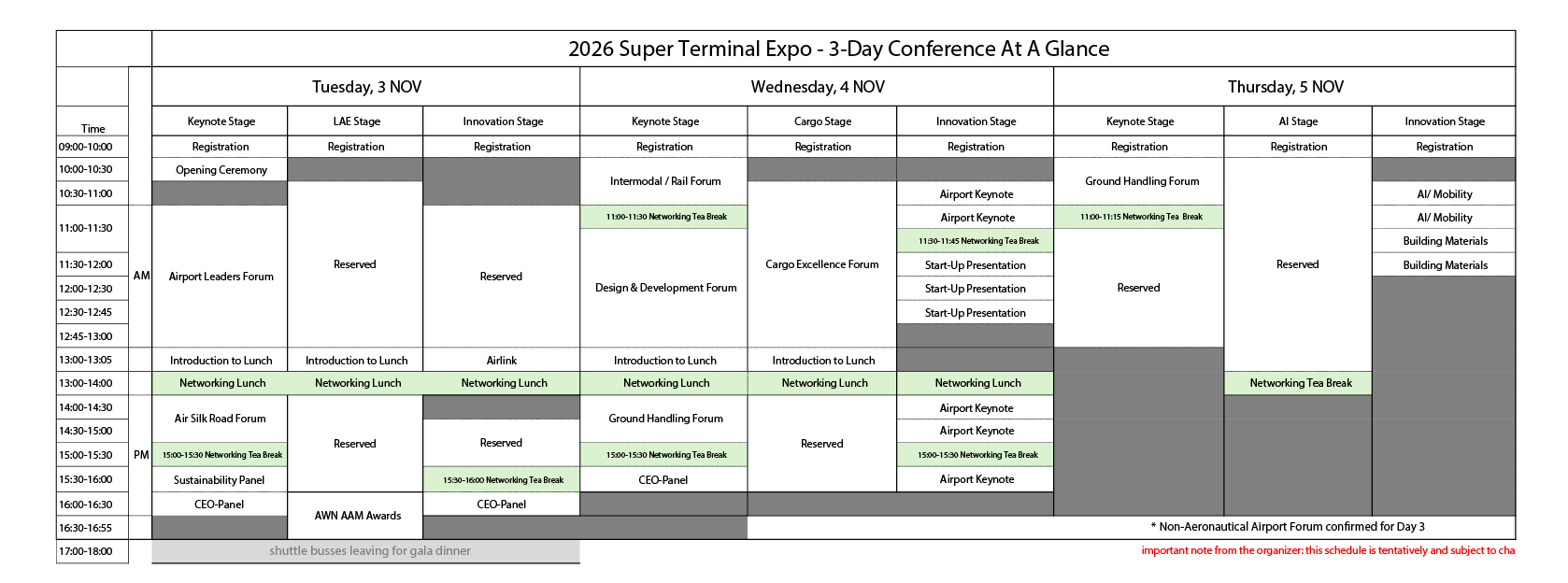 Super Terminal Expo 2026 is the leading event for passenger and cargo terminal design, development, and innovation in the Asia-Pacific region. It is ideal for airport authorities, airline executives, logistics specialists, technology providers, and infrastructure developers.