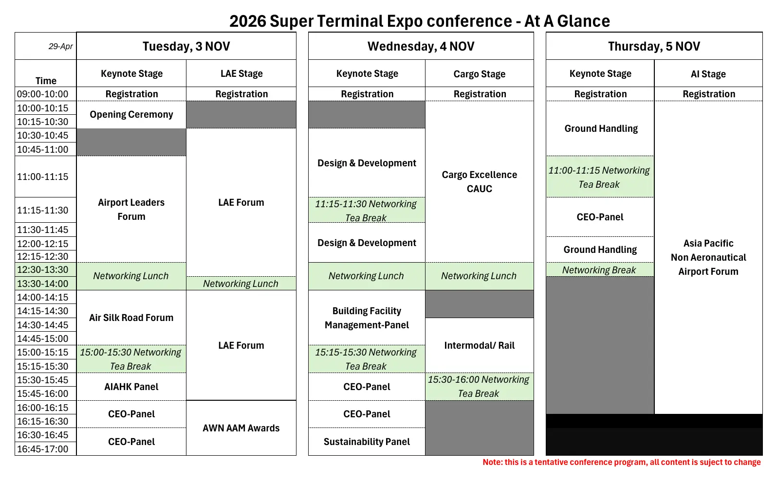 Super Terminal Expo (STE) 2026 is the definitive event for passenger and cargo terminal design, development, and innovation in the Asia-Pacific region. Taking place from 3–5 November, 2026, at AsiaWorld-Expo, Hong Kong, this three-day event will unite global leaders in aviation, logistics, technology, and infrastructure to redefine the future of smart airports, sustainable terminal innovations, and advanced air mobility solutions.